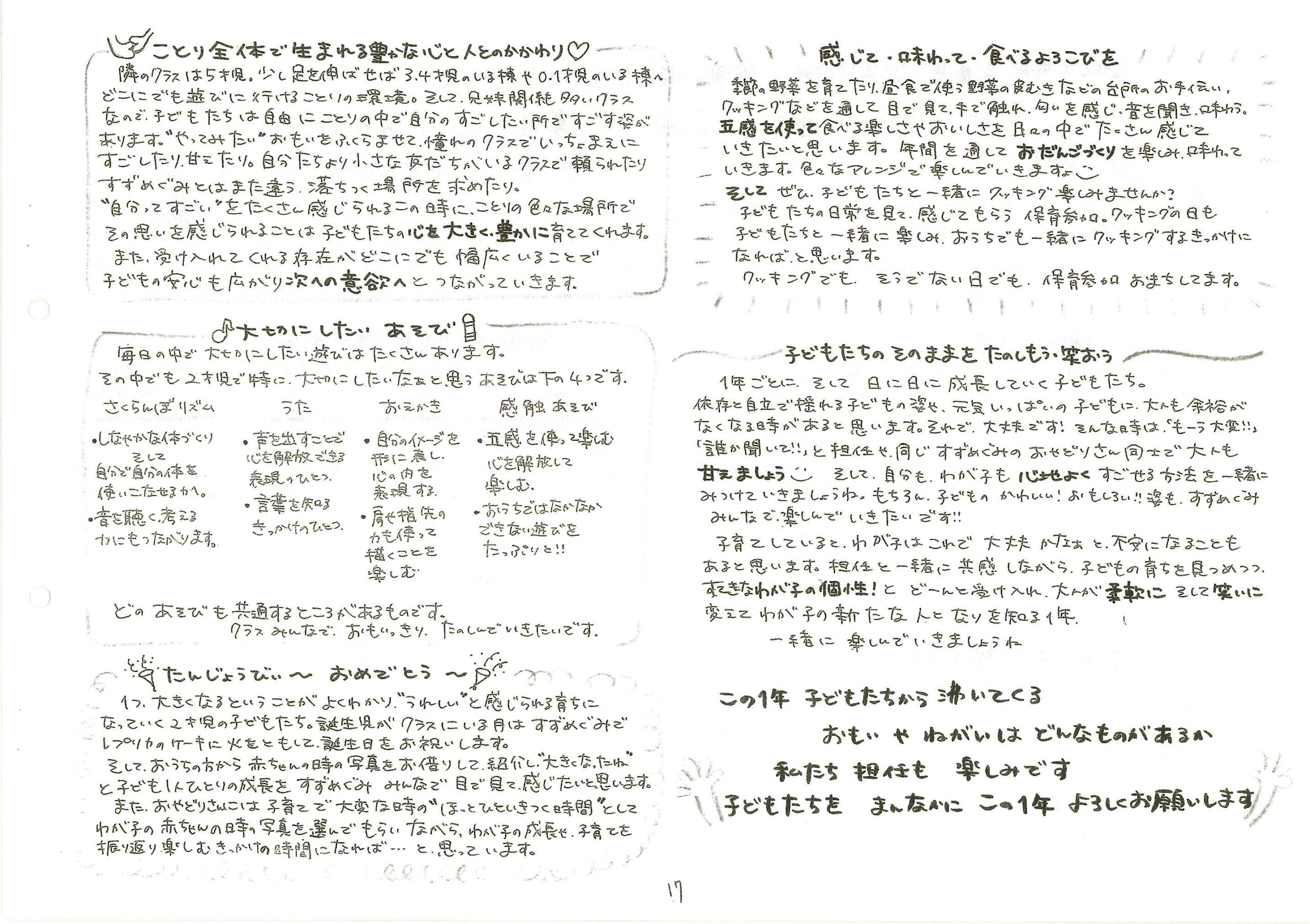 2歳児クラス すずめぐみ (画面をクリックすると大きく見ることができます)